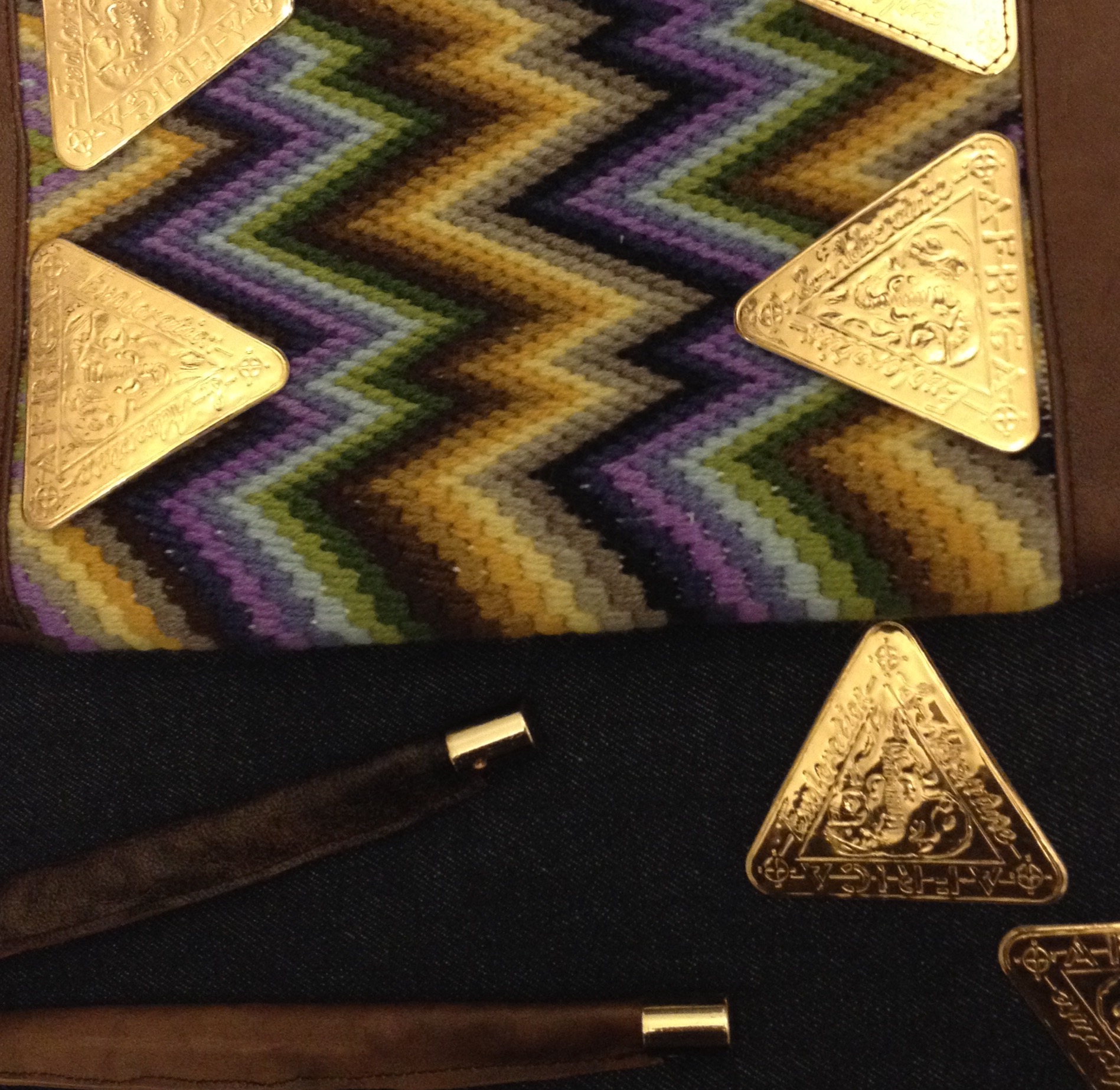 work in process vintage cross stitch with gold colored old labels January 27, 2017January 29, 2017 / Susanoo