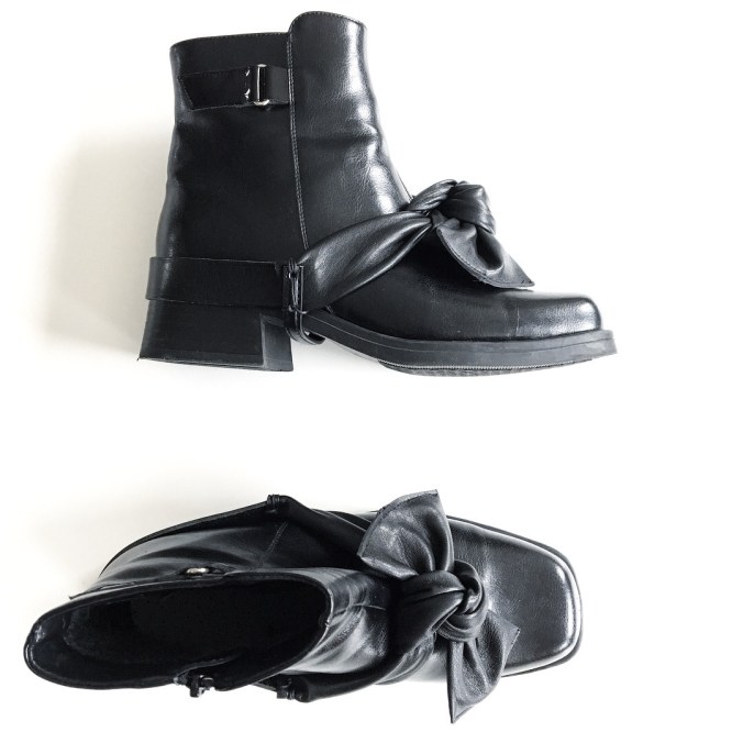 And a pair of black leather ankle boots made i Finland (second hand purchase) got a makeover with a leather bow too.