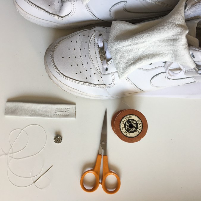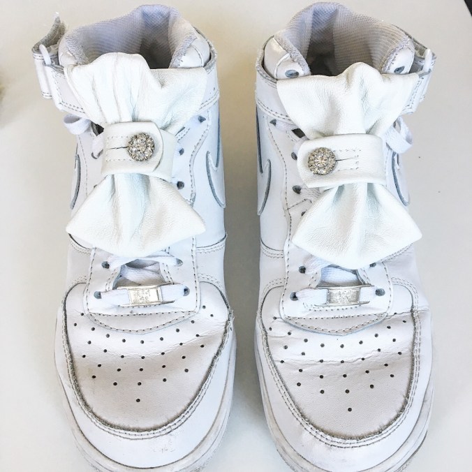 Here I have added a leather bow to a pair of NIKE sneakers bought second hand.