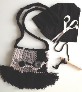 diy crochet bag made out of old t-shirts, bamboo hook, Fiskars scissors November 22, 2015January 25, 2017 / Susanoo