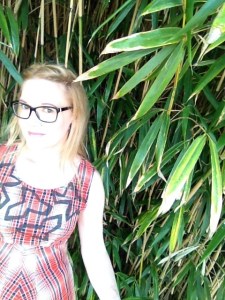 Susanna wearing diy dress with stamped shapes at botanical garden in Delft May 18, 2016January 26, 2017 / Susanoo