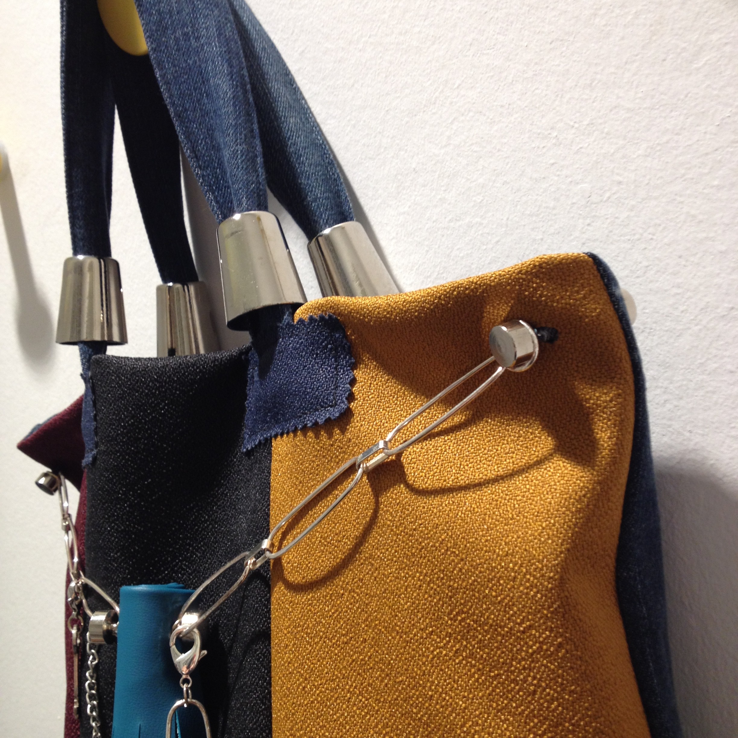 diy from fabric sofa samples bag with recycled parts from old jewellery and bags