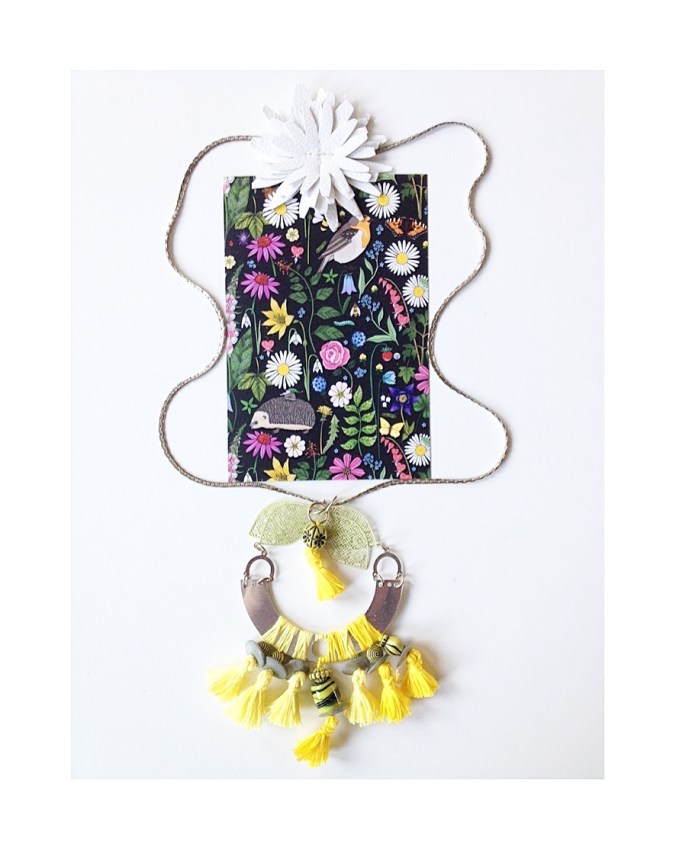 Yellow thread tassels combined with the metal plate. Card is by emmajansson.se